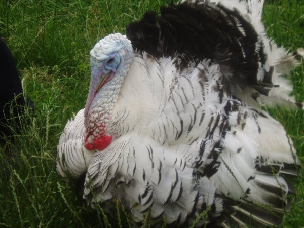 Ruth has her new ducklings on the pond, tragically we have had a visit from Swiper the Fox but we have lots of little chicks and some of our poultry have identity problems as they have hatched out eggs not belonging to them!  The three Crollwitzer turkeys are having their annual competition to see who’s tail is the finest and who’s face can go the most blue.  Their ladies are very unimpressed!